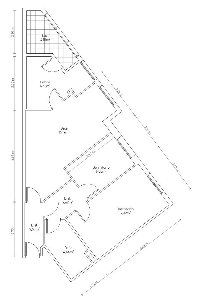 Con 65 m² perfectamente distribuidos, el inmueble ofrece un espacio cómodo y funcional, ideal tanto para parejas como para pequeñas familias o incluso como inversión. Dispone de dos habitaciones, un baño completo, cocina independiente con salida a galería y un acogedor salón-comedor con abundante luz natural durante todo el día.
